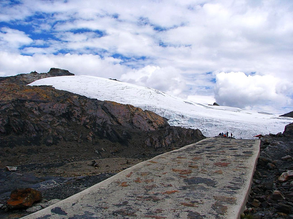 De gletcher is de laatste jaren zeer sterk gesmolten door de opwarming van de aarde. Heel wat van mijn Peruviaanse metgezellen bekloegen zich er over. Maar dat weerhield ze er toch niet van om hun plastieken zakjes uit het venster van de bus te gooien.